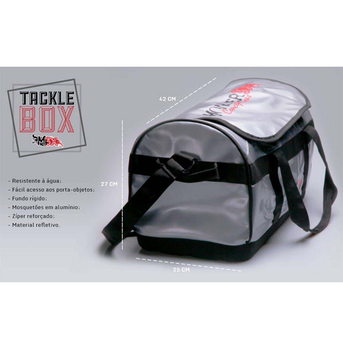 A Bolsa Monster3x Tackle Box promete acompanhar o pescador em suas aventuras, com os equipamentos seguros e bem organizados.
