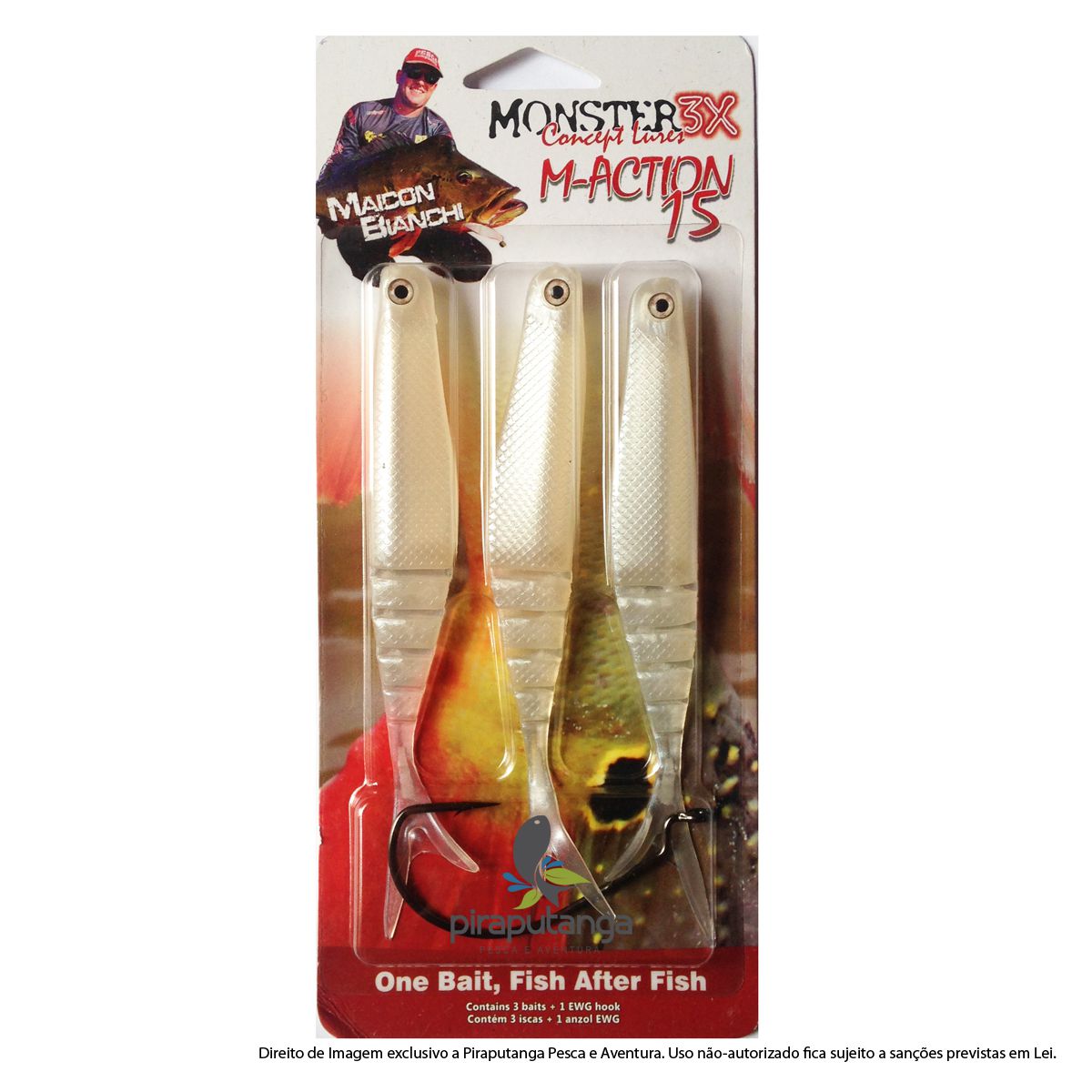 Deve ser usado com anzol Off-Set EWG 8/0 (superfície até meia-água) ou jig head 6/0 (fundo).